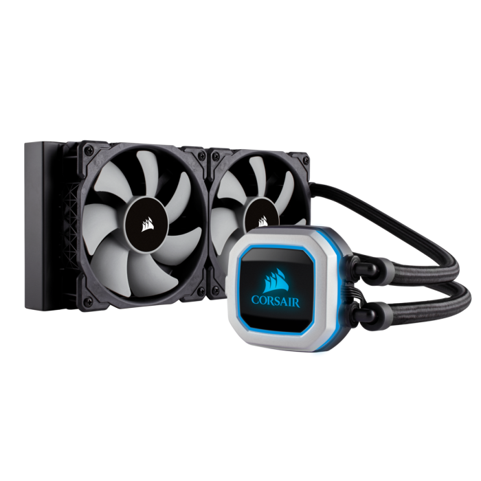 The CORSAIR Hydro Series H100i PRO is an all-in-one RGB liquid CPU cooler with a 240mm radiator built for low-noise cooling and bold styling with an RGB LED pump head.