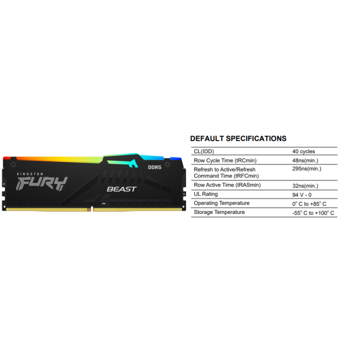 Kingston FURY Beast 32GB DIMM Kit (2x16GB) DDR5 6800MT/s CL34 1.4V RGB EXPO - KF568C34BBEAK2-32