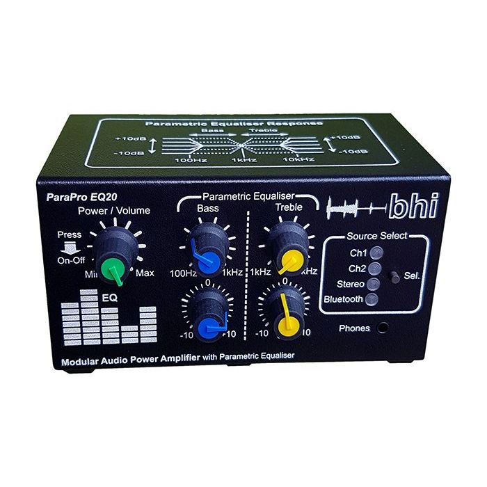 The ParaPro EQ20B unit is ideal for use with the bhi Dual In-Line, Compact In-Line and NEIM1031MKII units. It can also be used with the bhi DESKTOP & DSPKR noise canceling speakers via the headphone socket on the front.