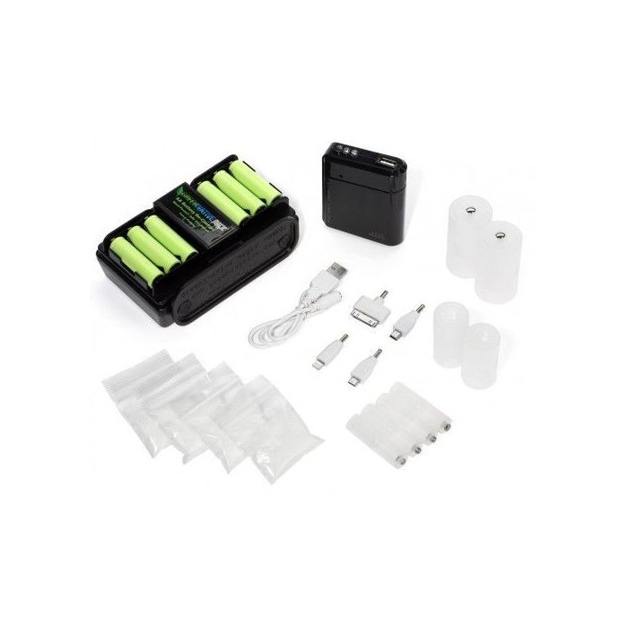 The New DOUBLE POWER OUTPUT G-MAG® Power Cell with “The Works” contains everything needed to provide personal power essentials whenever or wherever needed and, especially when disaster strikes. The new G-MAG® Power Cell has been improved by doubling its power output while only increasing the weight by about an ounce. Coupled with all of the accessories that come with “The Works” package, this is a MUST HAVE for your Emergency Kit, Bug-Out-Bag, and for a host of off the grid activities. “The Works” Package contains a G-MAG® Power Cell with 6 - 1000 mAh AA Batteries, 4 – 1000 mAh AAA Batteries, and a G-MAG® USB Charger Pack that operates from 4 AA Batteries and charges most cell phones and 5 VDC USB compatible devices. It will operate the integrated LED flashlight with 2 lightly charged AA Batteries as a very useful emergency flashlight. Also included are 4 pre-measured salt packs, 4 AAA to AA adapters (to allow for charging AAA Batteries ), 2 AA to C and 2 AA to D adapters. With these adapters, C and D Sized Devices can be operated with freshly charged AA Batteries.