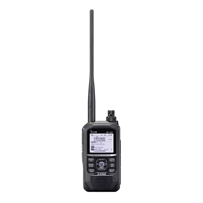 The ID-50A's Band Scope and Waterfall displays can visually show active channels with a wide span and timeline, so it is easy to find active channels by sight. The Dualwatch function doubles QSO opportunities to monitor VHF/VHF, VHF/UHF and UHF/UHF bands at the same time. The ID-50A can receive both the Airband and the FM bands. Large capacity battery pack, BP-307 for the IC-705 is usable as well.