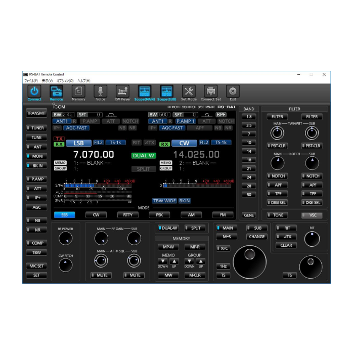 In remote control, in addition to the interference cancellation function and filter setting that were supported by the old product, it corresponds also to the operation of RIT · ⊿ TX newly, and realized various control. In addition to manipulating with the remote encoder RC – 28 (sold separately) that realizes smooth frequency change, it corresponds to the operation with the mouse click on a new indicator, the panel enlarged display mode is installed, and the interface is further easy to use became.