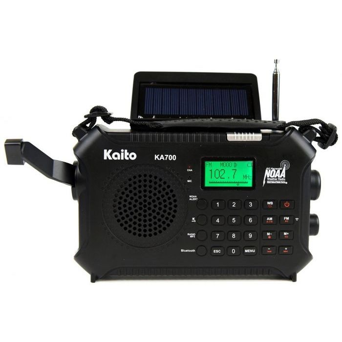 Kaito KA700 Bluetooth Emergency Hand Crank Dynamo & Solar Powered AM FM Weather Band Radio With Recorder and MP3 Player - Rugged Design for Hiking, Camping, Construction Sites, Etc.(Black)