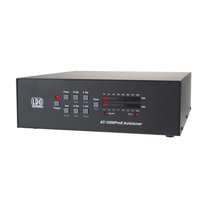The LDG AT-1000ProII is our flagship automatic tuner. Made for QRO hams, it will handle 1,000 watts SSB or 350 watts FM/Digital from 1.8-54 MHz.