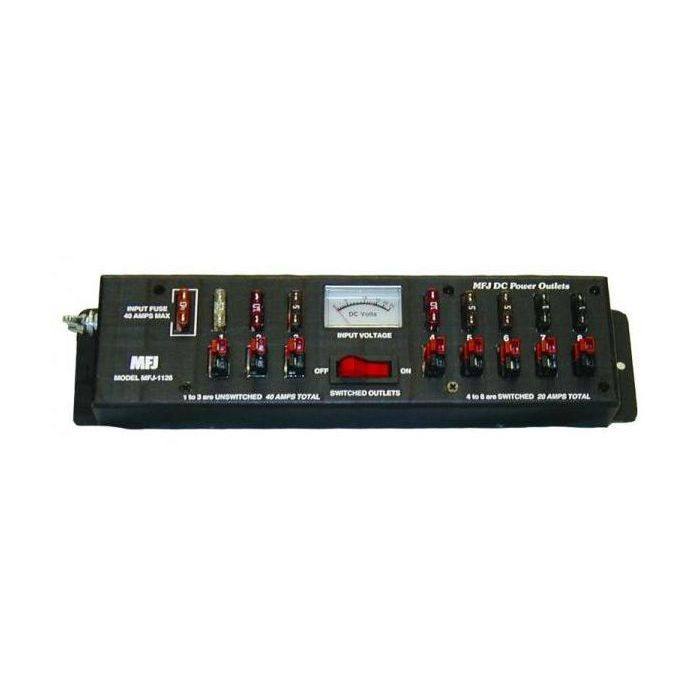 Open Box MFJ-1126 40 Amp Multiple DC Power Outlet Strip with Voltmeter SN165217