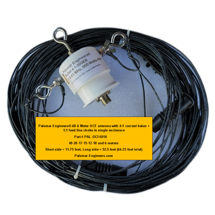 The PAL-OCF4010-500 covers 40-30-20-17-15-12-10 and 6 meters in a length of 66 feet. 500 Watts PEP Power Handling Capability.