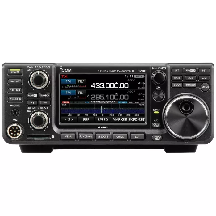 The IC-9700 is an all mode Tri-band transceiver, covering 2 m, 70 cm, and 23 cm. In addition to the traditional SSB, AM, FM, CW, and RTTY modes, the transceiver also incorporates D-STAR (Digital Smart Technology for Amateur Radio) DV and DD modes. A full featured Satellite mode is built-in! There are three antenna connectors, one each for 144, 430/440, and 1200 MHz.