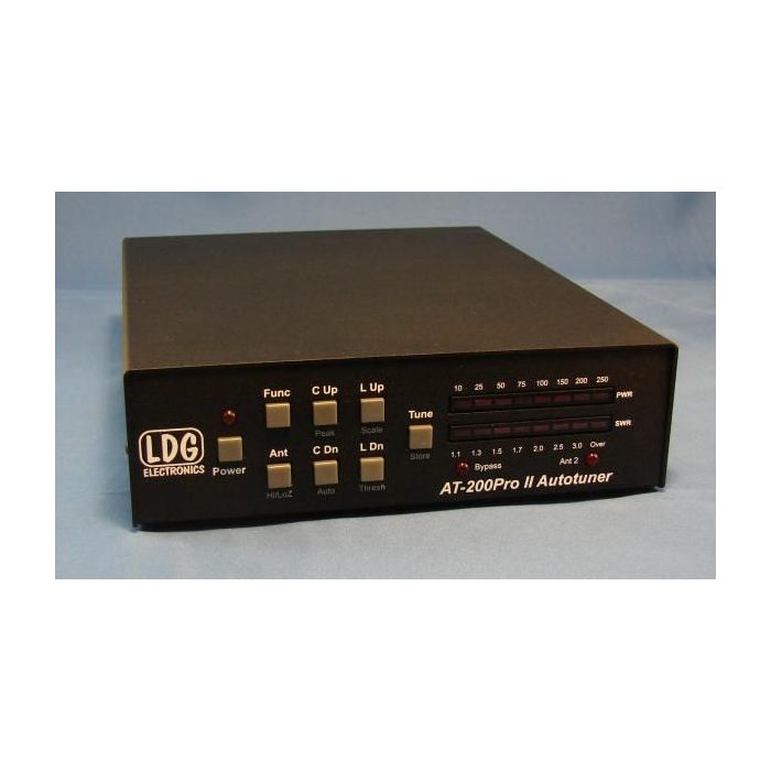 LDG Automatic Antenna Tuner - 200 Watt 1.8-30MHz, 100 Watt 54MHz. Will typically match a 10:1 SWR down to 1.5:1 in just a few seconds on a coax fed antenna.